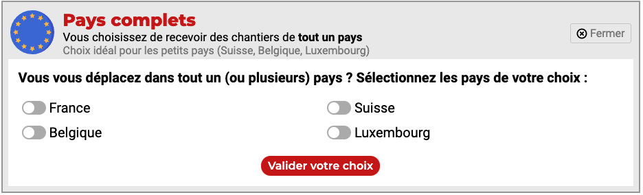 Vous pouvez aussi choisir simplement un ou plusieurs pays complets.