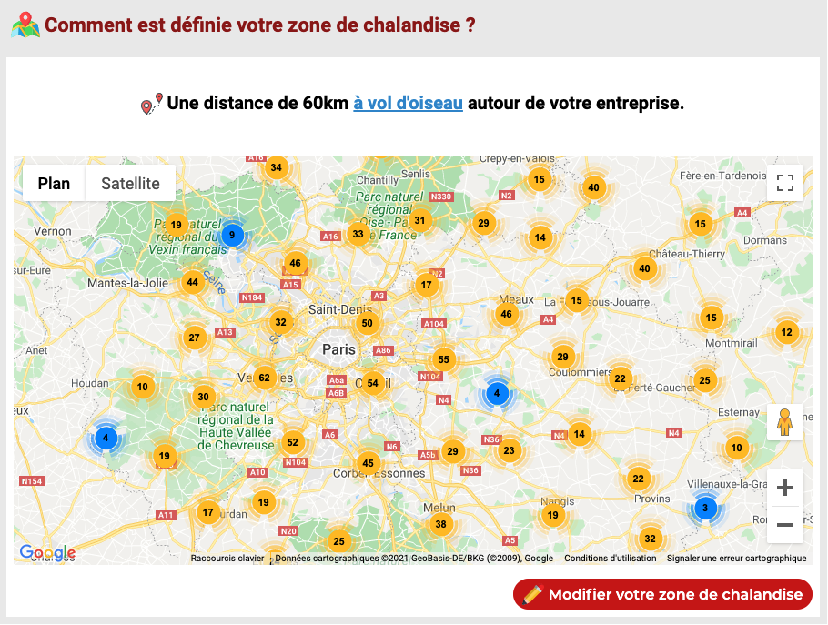Vous pouvez modifier à tout moment votre zone de chalandise en cliquant sur le bouton «Modifiez votre zone de chalandise». Les modifications sont immédiatement prises en compte.